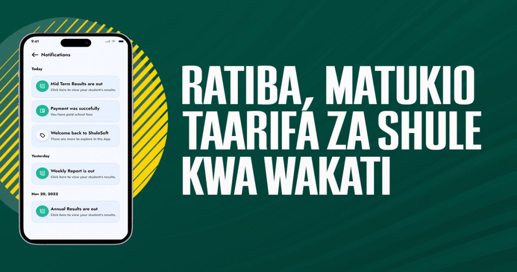 Ratiba za mitihani, tarehe za likizo, matukio ya shule, na taarifa muhimu hutumwa kama arifa